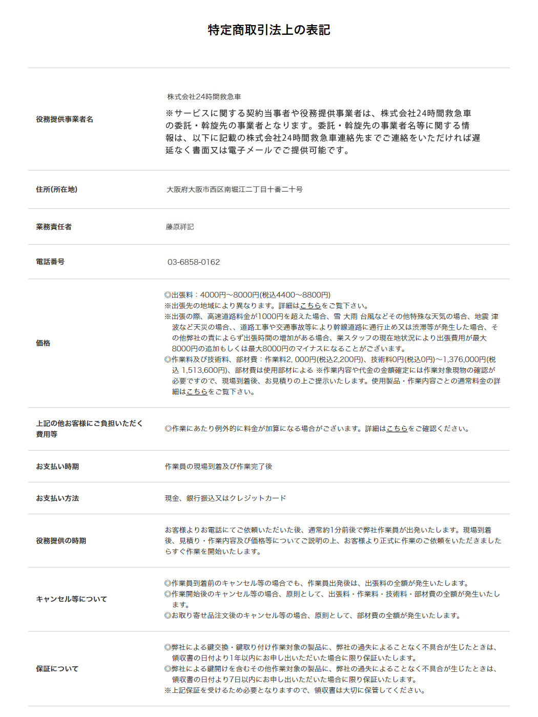 • ◎弊社による鍵交換・鍵取り付け作業対象の製品に、弊社の過失によることなく不具合が生じたときは、領収書の日付より1年以内にお申し出いただいた場合に限り保証いたします。