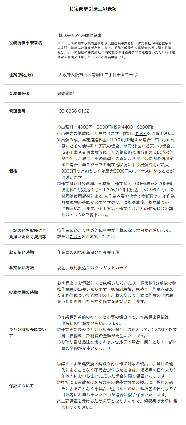 お客様よりお電話にてご依頼いただいた後、通常約1分前後で弊社作業員が出発いたします。現場到着後、見積り・作業内容及び価格等についてご説明の上、お客様より正式に作業のご依頼をいただきましたらすぐ作業を開始いたします。